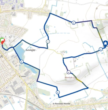 Les randonneurs s’élanceront du Parc Honoré Declercq à Bailleul dès 10h30 pour le 14 km, suivi du départ du 7 km à 11h. Que vous choisissiez la boucle de découverte ou le tracé plus exigeant de 14 km (avec ses 155m de dénivelé et sa traversée du Conservatoire Botanique), vous profiterez d'un cadre naturel exceptionnel. Le parcours vous emmènera à travers le Ravensberg et la campagne environnante avant de rallier l'effervescence du village de course.